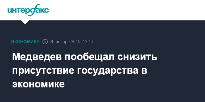 Москва. 29 января. INTERFAX.RU – Курс на снижение роли государства в экономике будет продолжен, заявил премьер России Дмитрий Медведев.