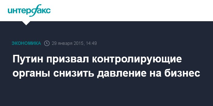 Москва. 29 января. INTERFAX.RU - Президент РФ Владимир Путин заявил о необходимости создавать благоприятные условия для работы бизнеса, в том числе за счет снижения давления конторолирующих органов.