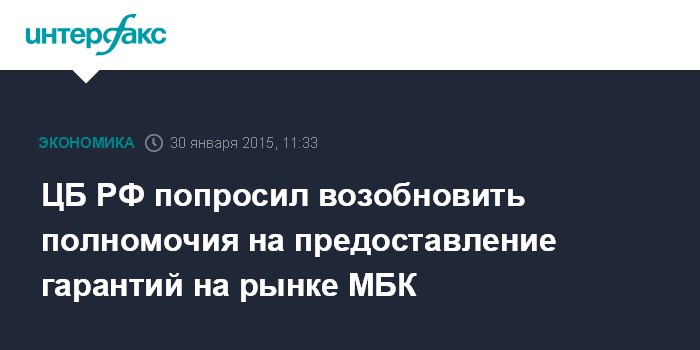 ЦБ РФ попросил возобновить полномочия на предоставление гарантий на рынке МБК