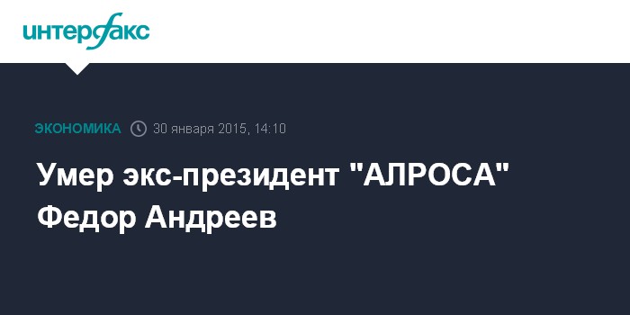 Москва. 30 января. INTERFAX.RU - Скончался экс-президент "АЛРОСА" Федор Андреев, сообщил "Интерфаксу" источник, знакомый с кадровыми вопросами алмазодобывающей компании.