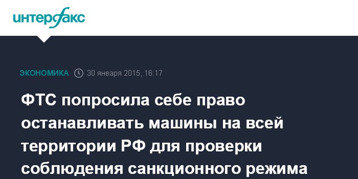 Москва. 30 января. INTERFAX.RU – Федеральная таможенная служба просит предоставить ей право останавливать машины на всей территории России для проверки соблюдения санкционного режима, следует из уведомления, опубликованного в пятницу на едином портале.