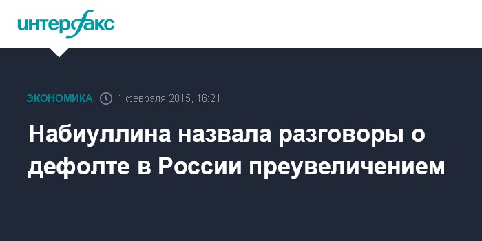 Москва. 1 февраля. INTERFAX.RU - Глава Центробанка РФ Эльвира Набиуллина считает пустыми разговоры и прогнозы о возможном дефолте в России.