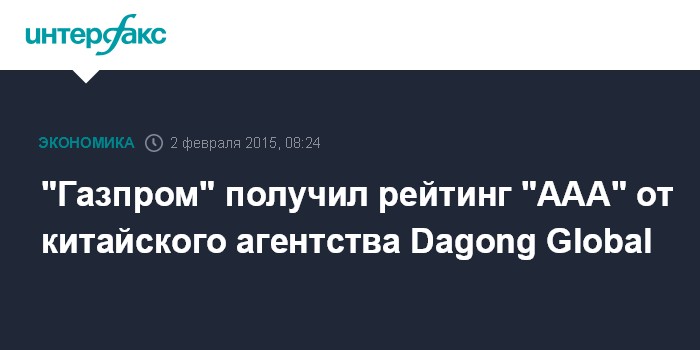 "Газпром" получил рейтинг "ААА" от китайского агентства Dagong Global