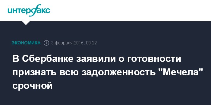 В Сбербанке заявили о готовности признать всю задолженность "Мечела" срочной