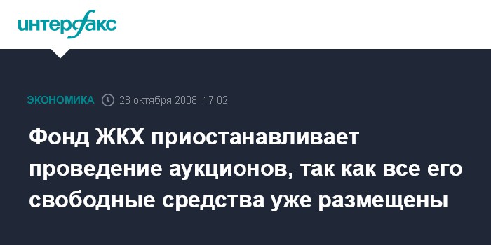 Фонд ЖКХ приостанавливает проведение аукционов, так как все его свободные средства уже размещены