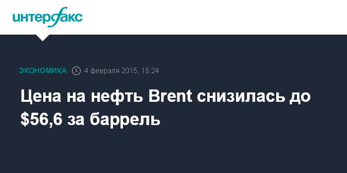 Цена на нефть Brent снизилась до $56,6 за баррель
