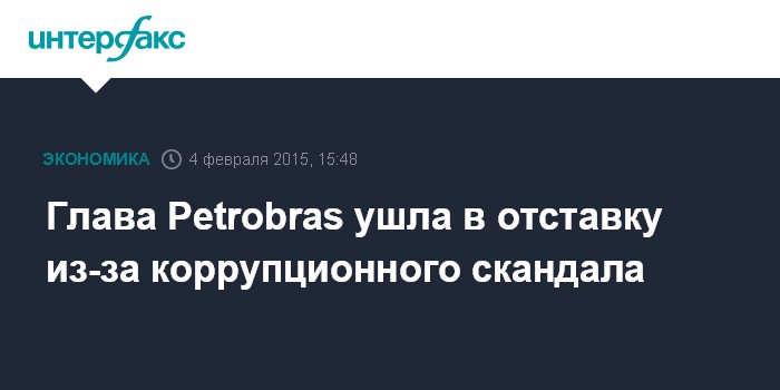 Ранее информированные источники сообщали, что президент Бразилии Дилма Русеф согласилась поменять руководство Petrobras на фоне громкого коррупционного скандала. По данным бразильских СМИ, за Грасас Фостер в отставку уйдут и все топ-менеджеры Petrobras.