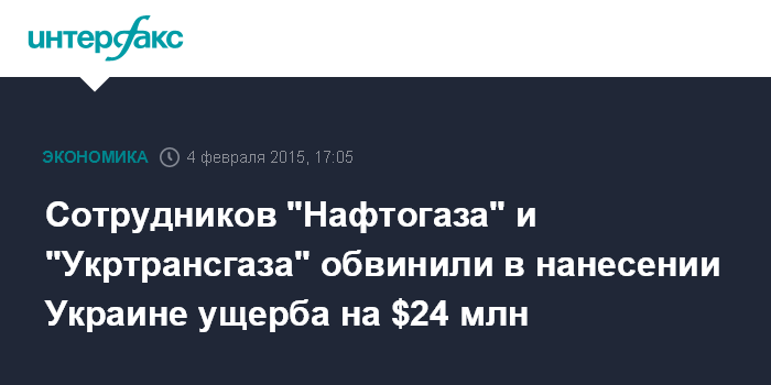Москва. 4 февраля. INTERFAX.RU - Генеральная прокуратура Украины возбудила уголовное дело в отношении должностных лиц "Нафтогаза Украины" и "Укртрансгаза", они обвиняются в нанесении ущерба государству на сумму 400 млн гривен (порядка $24 млн по текущему курсу - ИФ), сообщается на сайте прокуратуры.