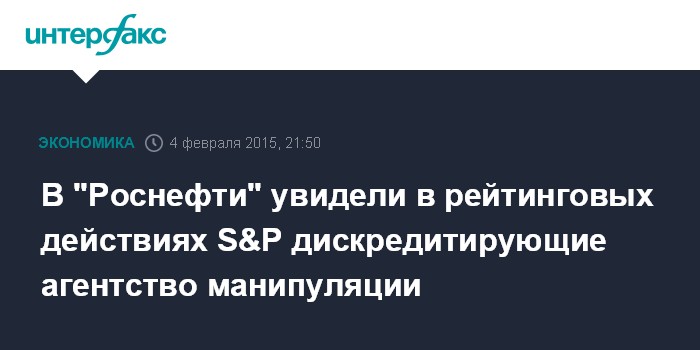 Москва. 4 февраля. INTERFAX.RU - Действия Standard & Poor's, которое недавно понизило суверенный рейтинг РФ, а в среду - рейтинги крупнейших российских компаний и банков, дискредитируют агентство, считают в "Роснефти".