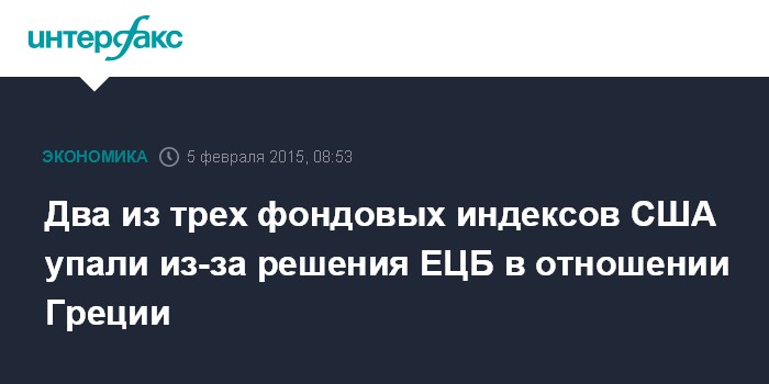 Два из трех фондовых индексов США упали из-за решения ЕЦБ в отношении Греции