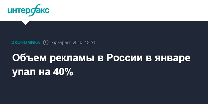 "В январе объем рекламы на телеканалах сократился на 28%, в радио-сегменте ее количество уменьшилась на 30%. Сильнее всего пострадали печатные СМИ (сокращение рекламы на 35%), особенно глянцевые издания, где падение объема рекламы составило 40%", - сказал Волин. По его словам, после падения курса рубля место России на мировом рекламном рынке уменьшилось вдвое.