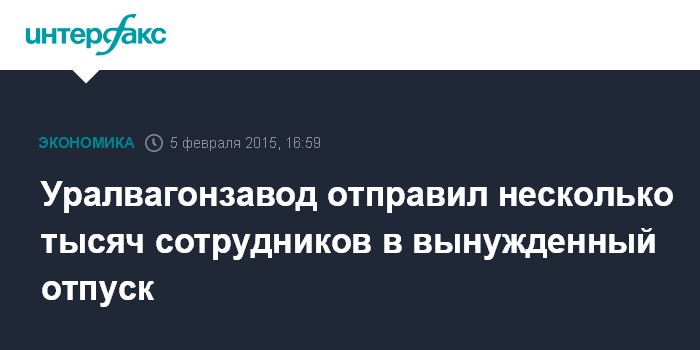 Москва. 5 февраля. INTERFAX.RU – "Уралвагонзавод" с 4 февраля на две недели отправил в вынужденный отпуск несколько тысяч сотрудников, сообщил "Интерфаксу" заместитель генерального директора НПК Алексей Жарич.