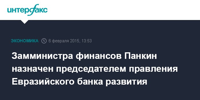 Замминистра финансов Панкин назначен председателем правления Евразийского банка развития