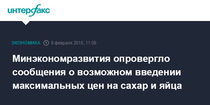 В понедельник ряд СМИ сообщили, что правительство может ввести в регионах максимальные цены на сахар, белокочанную капусту и яйца, а в Минэкономразвития рассматривается возможность установления максимальной цены на эти товары.