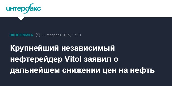 Москва. 11 февраля. INTERFAX.RU – Цены на нефть могут возобновить падение, поскольку неослабевающий рост добычи в США приводит к возникновению очень значительных запасов в стране, заявил главный исполнительный директор крупнейшего независимого нефтерейдера мира Vitol Group Ян Тейлор на конференции в Лондоне.