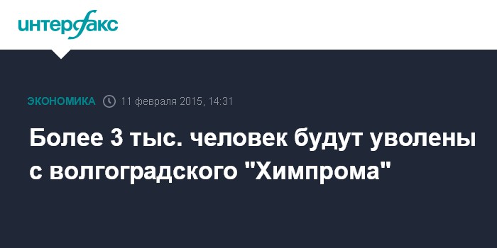 Москва. 11 февраля. INTERFAX.RU – Более 3 тыс. человек будут уволены в волгоградском "Химпром" (Волгоград), сообщил врио заместителя руководителя Государственной инспекции труда в Волгоградской области Сергей Педченко в среду.