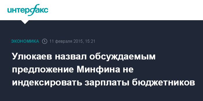 Москва. 11 февраля. INTERFAX.RU - Предложение Минфина РФ отказаться от индексации зарплат бюджетников и соцвыплат в 2015 году требует обсуждения, считает глава Минэкономразвития Алексей Улюкаев.