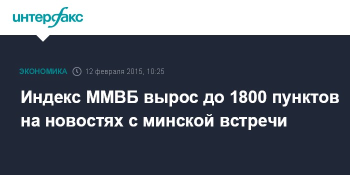 Москва. 12 февраля. INTERFAX.RU - Рублевый индекс ММВБ утром в четверг поднялся до 1800 пунктов на фоне достигнутых минских договоренностей политиков об урегулировании конфликта на Украине.
