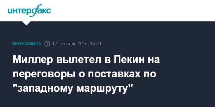 Москва. 12 февраля. INTERFAX.RU – Председатель правления "Газпрома" Алексей Миллер в четверг вылетел из Томска в Пекин для проведения очередного раунда переговоров о поставках газа по "западному маршруту".