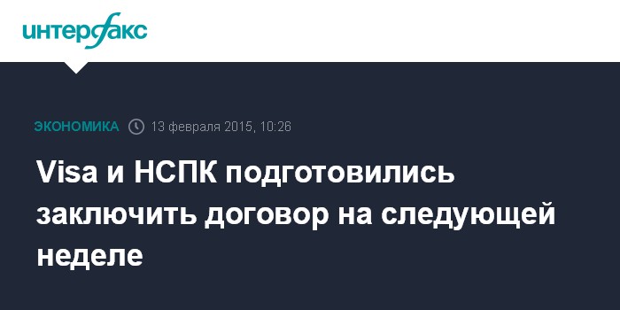 Договор между НСПК и системой Visa о переводе процессинга по картам Visa в России в НСПК находится на стадии обсуждения для подготовки к подписанию, сообщали тогда "Интерфаксу" в пресс-службе Банка России.