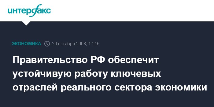 Москва. 29 октября. INTERFAX.RU - Правительство обеспечит устойчивую работу ключевых отраслей реального сектора экономики, заявил премьер-министр РФ Владимир Путин на совещании по экономическим вопросам в среду в Ново-Огарево.