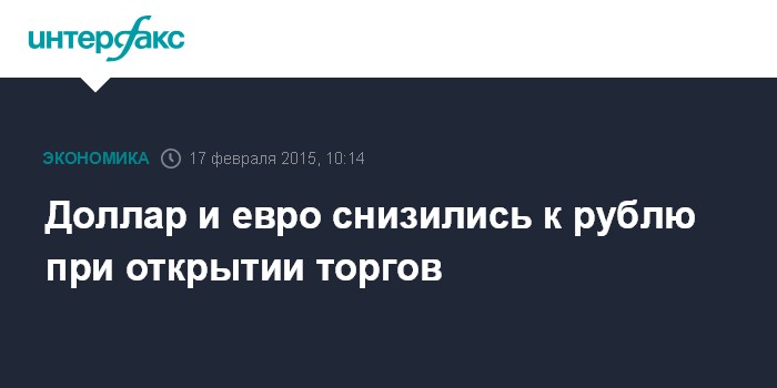 Москва. 17 февраля. INTERFAX.RU – Доллар и евро снизились на Московской бирже в первые минуты торгов вторника, рубль укрепляется на возобновлении повышения мировых цен на нефть.