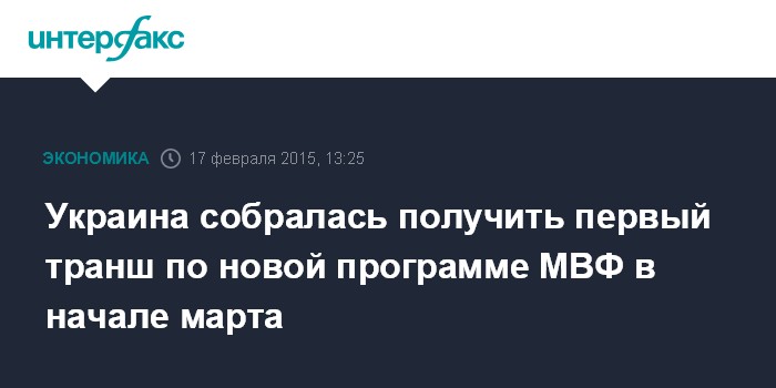 Москва. 17 февраля. INTERFAX.RU – Украина ожидает, что первый транш в рамках программы EFF МВФ поступит в первую-вторую неделю марта, сообщила министр финансов Наталья Яресько.