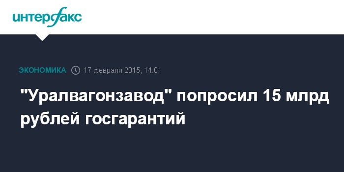 Москва. 17 февраля. INTERFAX.RU – Группа "Уралвагонзавод" просит 15 млрд рублей государственных гарантий для одного из своих предприятий - "Челябинского тракторного завода" (ЧТЗ), сообщил журналистам генеральный директор УВЗ Олег Сиенко во вторник в Москве.