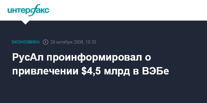 РусАл проинформировал о привлечении $4,5 млрд в ВЭБе