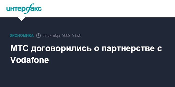 Москва. 29 октября. INTERFAX.RU - ОАО "Мобильные Телесистемы" заключило соглашение о стратегическом партнерстве с крупнейшим в мире сотовым оператором оператором Vodafone, сообщили "Интерфаксу" три источника на телекоммуникационном рынке России.