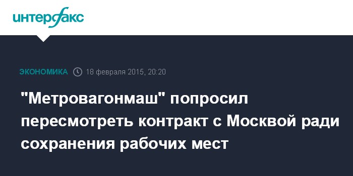 Москва. 18 февраля. INTERFAX.RU - ОАО "Метровагонмаш" (Мытищи, Московская облась) предлагает пересмотреть сроки поставки вагонов для ГУП "Московский метрополитен", чтобы избежать серьезных сокращений на предприятии, сообщил председатель первичной профсоюзной организации завода Сергей Коршунов.