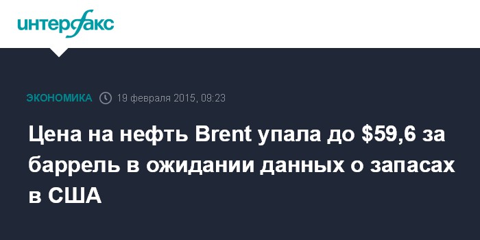 Москва. 19 февраля. INTERFAX.RU - Нефть дешевеет в четверг в ожидании данных о запасах в США, сообщает агентство Bloomberg.