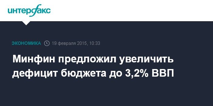 Москва. 19 февраля. INTERFAX.RU – Минфин России подготовил предложения по сокращению расходов федерального бюджета в 2015 году на 771,1 млрд рублей и увеличению дефицита с 0,6% ВВП до 3,2% ВВП. Предложения планируется рассмотреть на бюджетном совещании у премьер-министра Дмитрия Медведева 20 февраля.