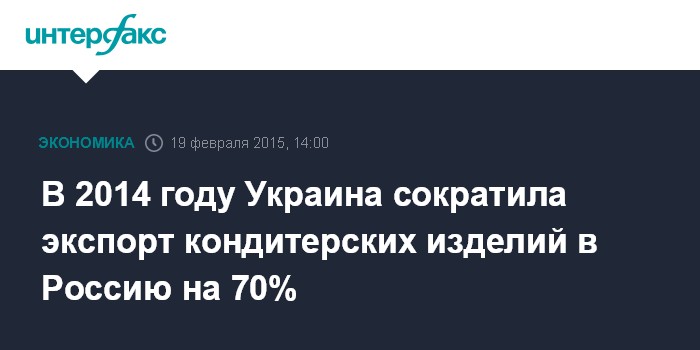 "Традиционным зарубежным рынком сбыта отечественных сладостей была Россия. Туда поступало около 45% ежегодного украинского экспорта кондитерских изделий. После российского запрета на ввоз украинской кондитерской продукции в сентябре 2014 года наш экспорт туда упал на 67% по сравнению с 2013", - сообщил президент ассоциации производителей кондитерских изделий "Укркондпром" Александр Балдынюк.