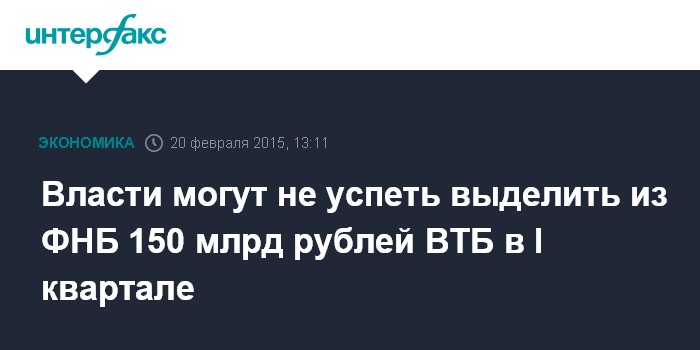 Власти могут не успеть выделить из ФНБ 150 млрд рублей ВТБ в I квартале