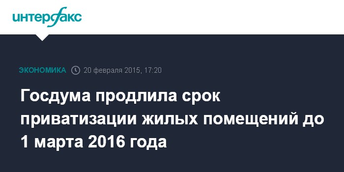 Согласно действующей редакции Жилищного кодекса, возможность приватизации жилых помещений прекращается с 1 марта 2015 года. Закон продлевает этот срок до 1 марта 2016 года.
