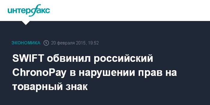 SWIFT обвинил российский ChronoPay в нарушении прав на товарный знак