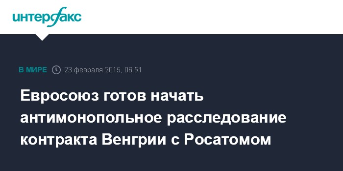 Евросоюз готов начать антимонопольное расследование контракта Венгрии с Росатомом