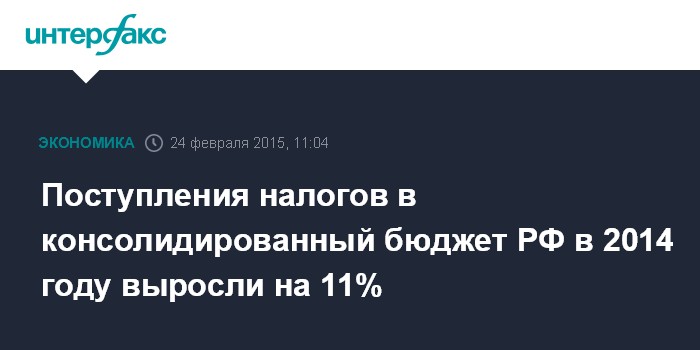 Поступления налогов в консолидированный бюджет РФ в 2014 году выросли на 11%
