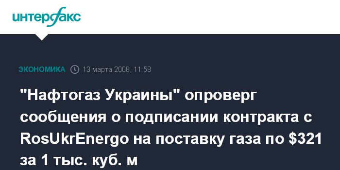 "Нафтогаз Украины" опроверг сообщения о подписании контракта с RosUkrEnergo на поставку газа по $321 за 1 тыс. куб. м
