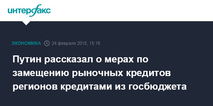 Москва. 24 февраля. INTERFAX.RU - Рыночные заимствования регионов РФ могут быть заменены кредитами из госбюджета со снижением платы за их использование, заявил президент РФ Владимир Путин.