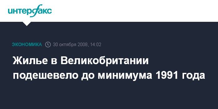 По данным ипотечной компании Swindon, средняя стоимость жилья упала на 14,6% по сравнению с аналогичным периодом прошлого года и составила 158,872 тыс. фунтов стерлингов ($261 тыс.), что является самым сильным снижением с 1991 года. По сравнению с сентябрем стоимость жилья понизилась на 1,4%.