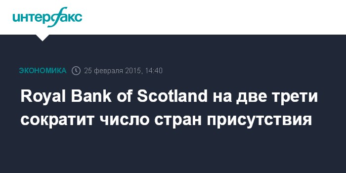 Москва. 25 февраля. INTERFAX.RU – Royal Bank of Scotland объявил о намерении сократить число стран присутствия на две трети - до 13, сообщило агентство Bloomberg со ссылкой на информированные источники. Совет директоров банка одобрил данный план в среду.