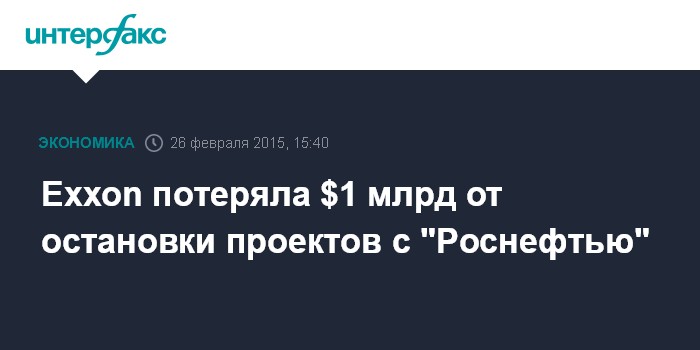 Москва. 26 февраля. INTERFAX.RU – ExxonMobil оценивает свои максимально возможные убытки от приостановки совместных проектов с "Роснефтью" на конец 2014 года в $1 млрд, говорится в отчете американской компании.