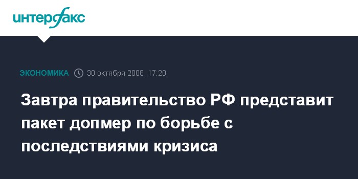 Завтра правительство РФ представит пакет допмер по борьбе с последствиями кризиса