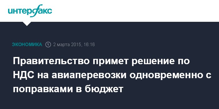 Правительство примет решение по НДС на авиаперевозки одновременно с поправками в бюджет