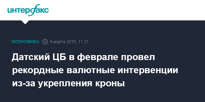 В Центробанке отмечают, что значительная часть интервенций пришлась на дни около 5 февраля, когда ЦБ принял решение о снижении ставки в четвертый раз за 30 дней. Тогда ставка по депозитам была понижена датским Центробанком 5 февраля на 25 базисных пунктов, до минус 0,75%. Ранее Центробанк уменьшал ставку на 15 базисных пунктов 19, 22 и 29 января.