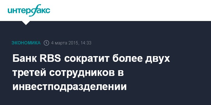 Банк RBS сократит более двух третей сотрудников в инвестподразделении