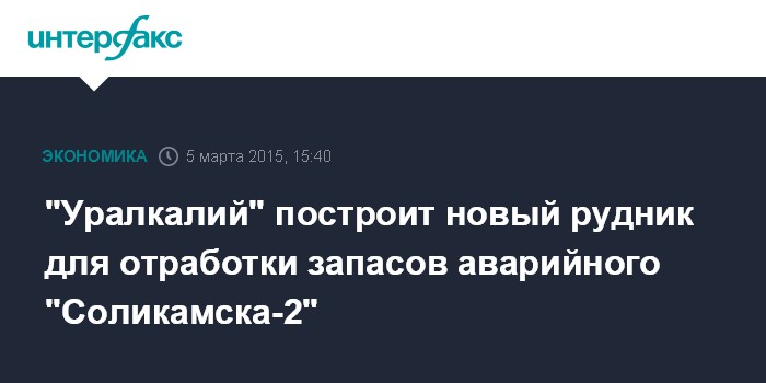 Москва. 5 марта. INTERFAX.RU – "Уралкалий" к 2020 году построит два новых шахтных ствола для безопасной отработки оставшихся запасов шахтного поля аварийного рудника "Соликамск-2", говорится в пресс-релизе компании. Соответствующий проект утвержден в рамках обновленной стратегии развития компании до 2020 года.