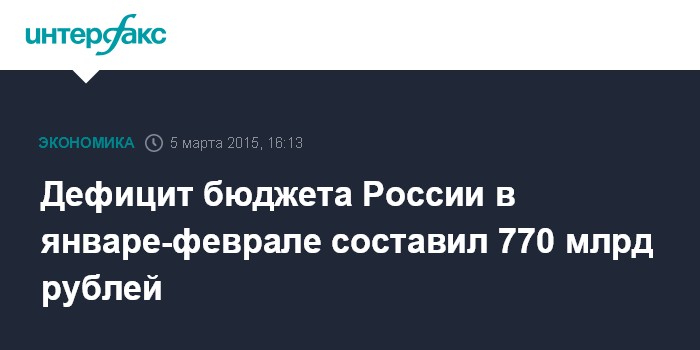 Дефицит бюджета России в январе-феврале составил 770 млрд рублей